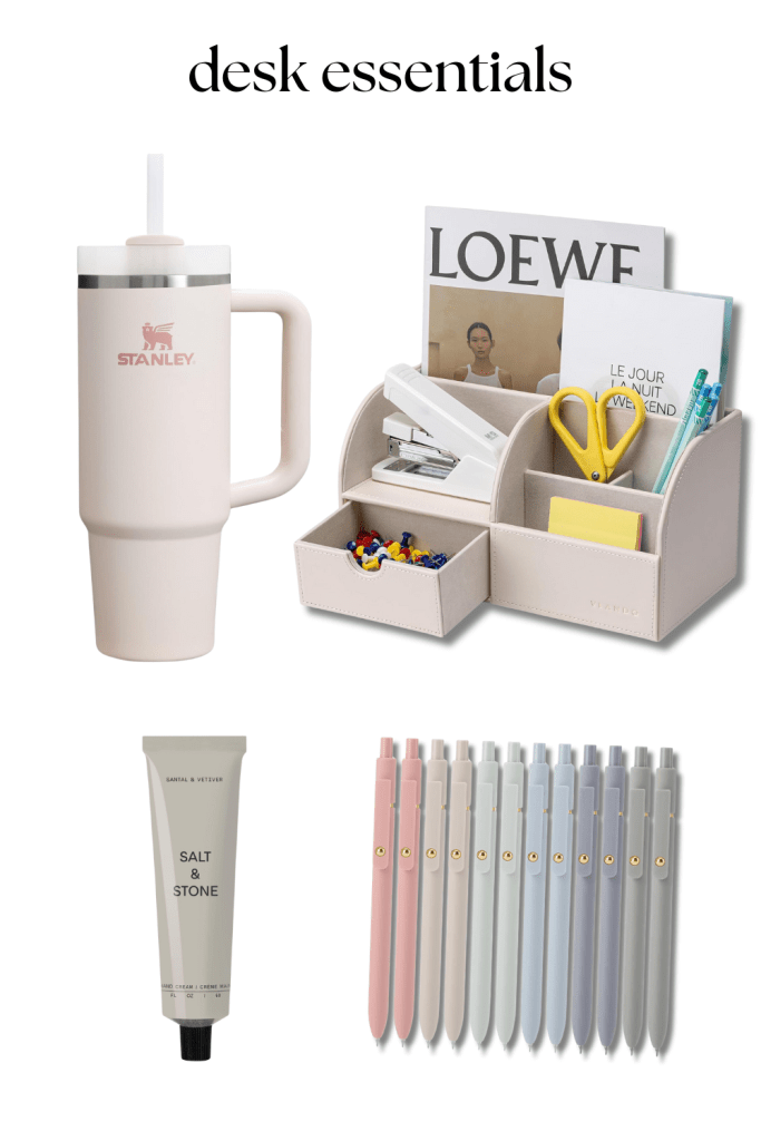 The most productive form of procrastination can be the simple act of arranging your workspace. Environment is everything. Your workspace should be elevated, calming, inspiring even. Or just look at least presentable. I believe in functionality, but things should at least look cute too. Here are a few items I consider to be essential for the desk space:
