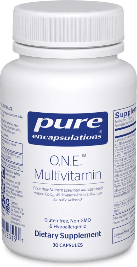 Let’s take it from the top. Instead of stocking up on singular supplements for each vitamin, it’s okay to get it all in one place. That doesn’t mean you should take any multivitamin out there. It’s important to find something that keeps you covered in the essentials – Vitamin B complex, Vitamin C, etc. – but is also clean. O.N.E. Multivitamin from Pure Encapsulations products are free from common allergens, artificial or unnecessary ingredients, and GMOs.